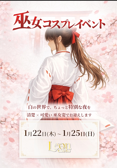 こんばんは!LEONのあやなです 今日は店休だったから家で 永遠に寝てた😴 先週は巫女イベありがとうございました🦊 楽しかった✨ 2月のイベントも楽しみ🍫♡ 今日はゆっくり休んだので 明日からまたがんばります🍀 LEONで待ってます🌷
