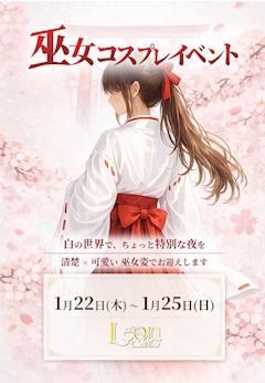こんばんは!ゆうりです🤍 ただいまレオンでは巫女イベント開催中です!✨ 女の子たちが巫女コスプレでお待ちしてます🥂 私も今日は出勤してます!🙌 お待ちしてます🥂